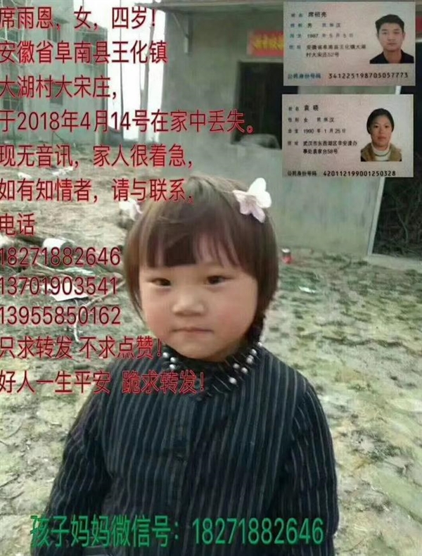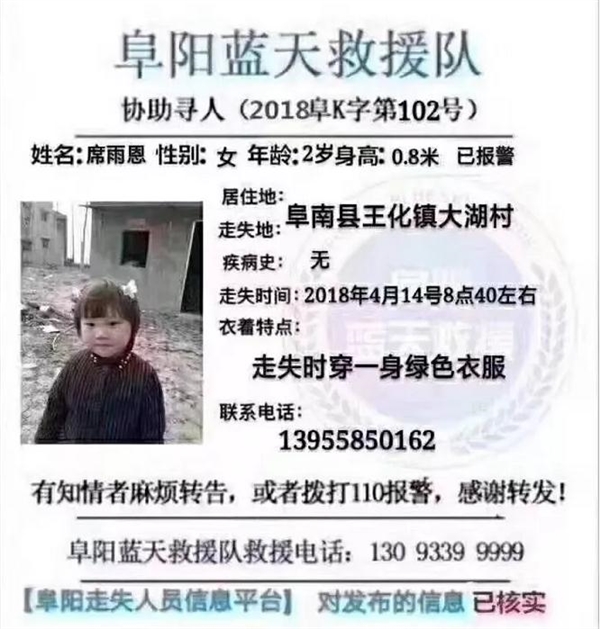 让所有阜阳人牵挂的 2 岁女孩席雨恩找到了,结局令人心痛···